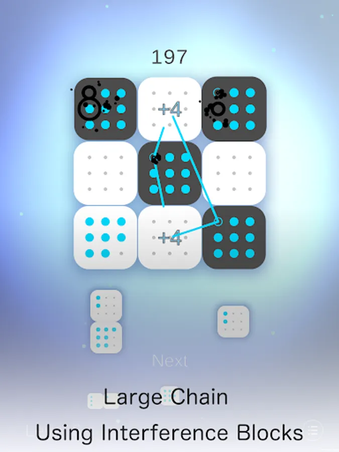 If the number of dots exceeds 9, a disturbing dot will be created as much as the number of dots exceeds 9, and the block cannot be placed there.