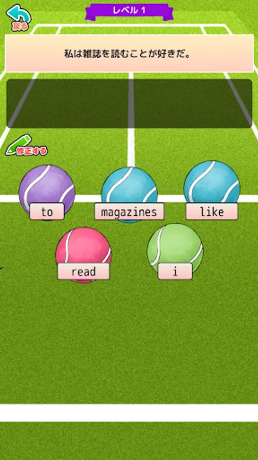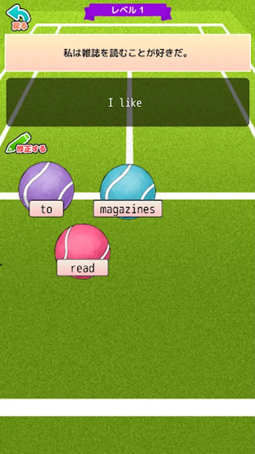 Tap the tennis ball to complete the correct sentence!