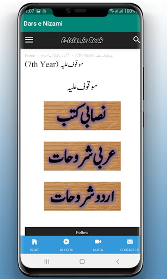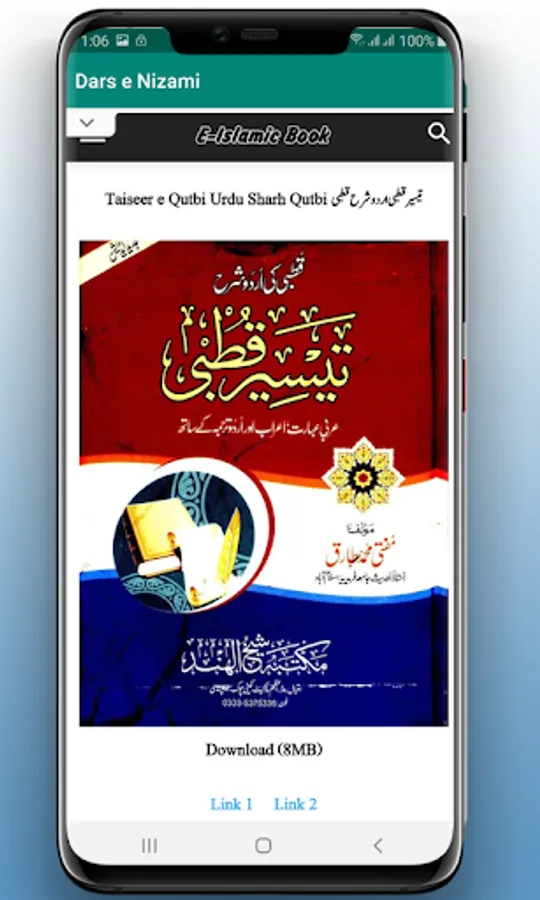 اس ایپ میں درس نظامی کی ہزاروں عربی اردو کتب مع شروحات موجود ہیں۔ درجہ اولی سے لے کر دروہ حدیث کی تمام کتب، اور ان کی عربی اردو شروحات یہاں آپ کو نہ صرف پڑھنے بلکہ ڈاون لوڈ کی سہولت کے ساتھ ملیں گیں۔ اس ایپ کو انٹر نیٹ آن رکھ کر استعمال کریں البتہ جس کتاب کو آپ ڈاون لوڈ کرلیں گے پھر انٹرنیٹ آن رکھنے کی ضرورت نہیں ہوگی۔درس نظامی ایپلی کیشن کے متعلق وٹس اپ کے ذریعے اپنے دوست احباب کو بھی مطلع کریں۔