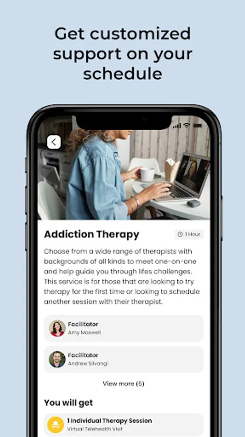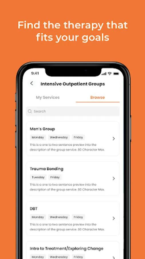 Browse and join therapy groups, IOP's, individual therapy sessions, and support groups