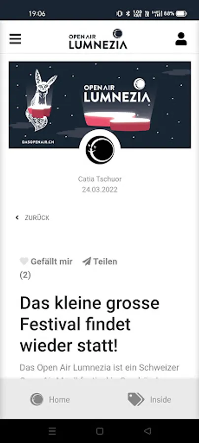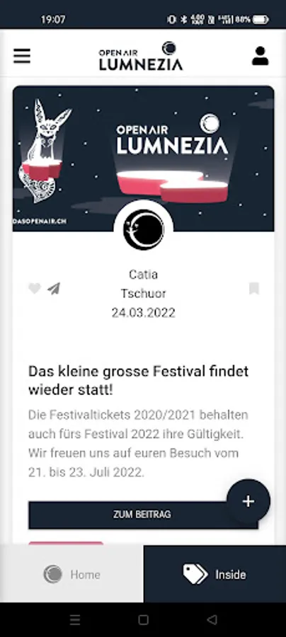 We actively provide you with the latest performance times and news via push notifications, inform you about the start of advance sales, the program or send you exciting news about the Open Air Lumnezia.