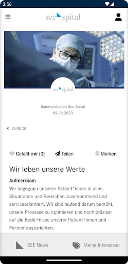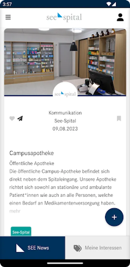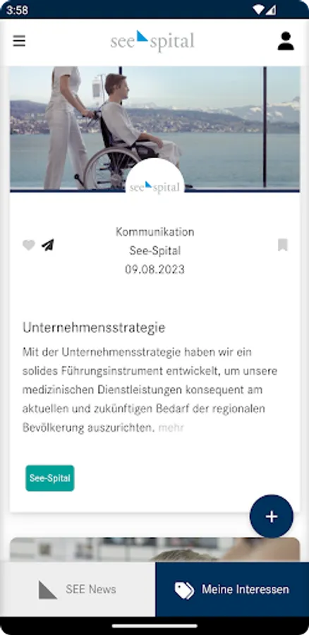 The SEE News app keeps you as an employee of the See-Spital Horgen up to date. Sign up easily with your individual email address and put together your tailor-made feed for operational information.