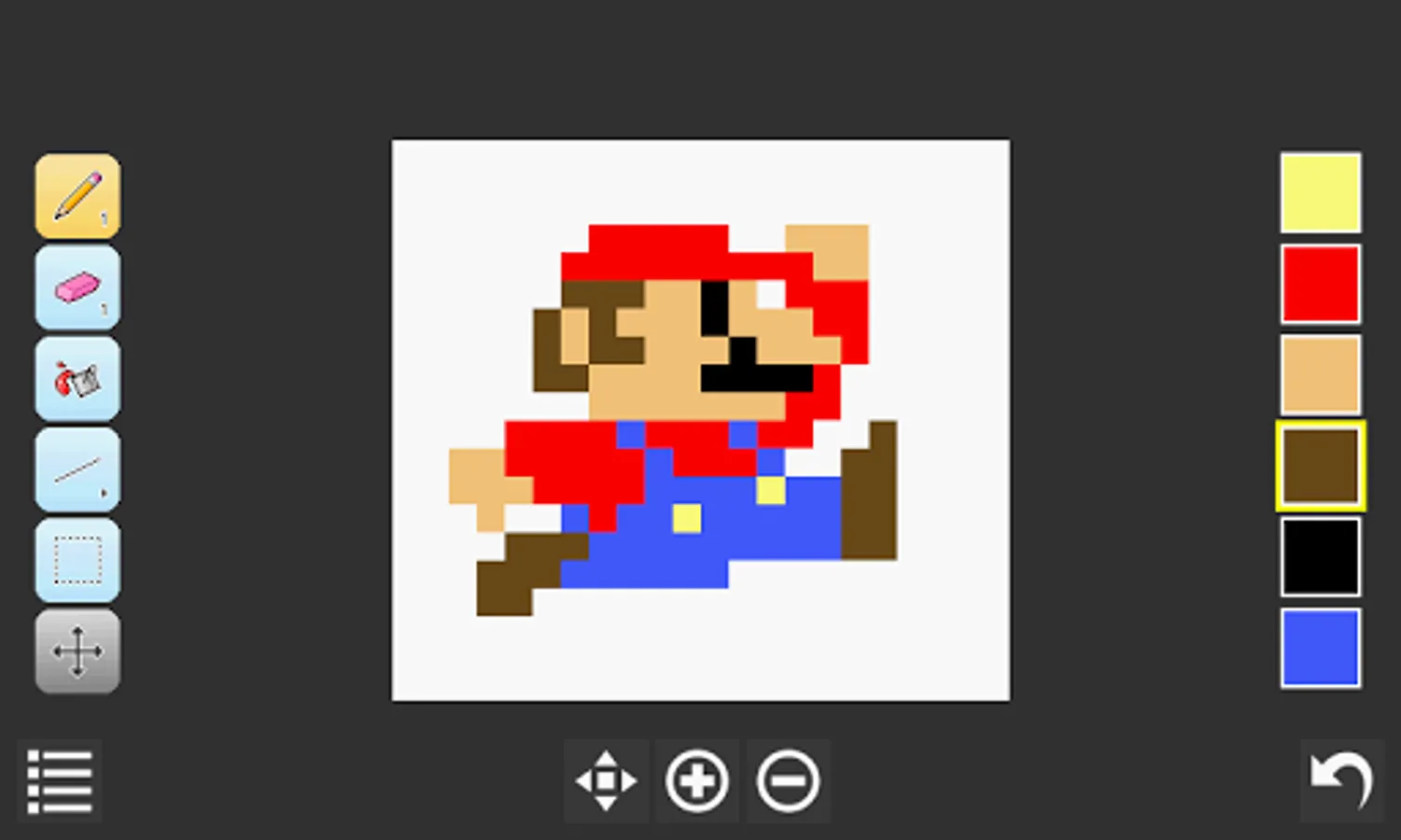 - Basic shapes, different pen/eraser sizes, flood filling, color dropper/picker, undo/redo