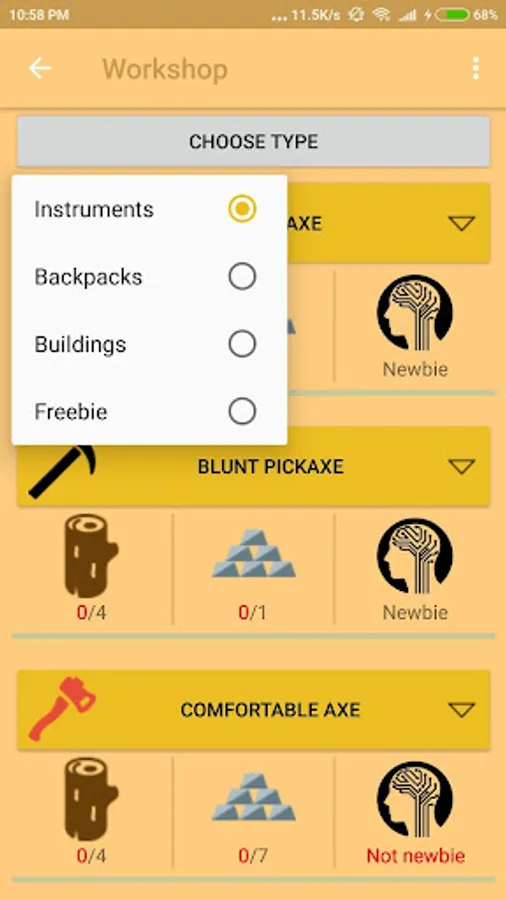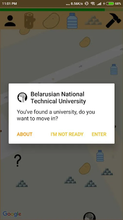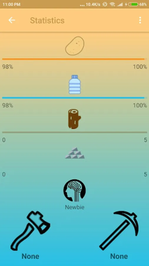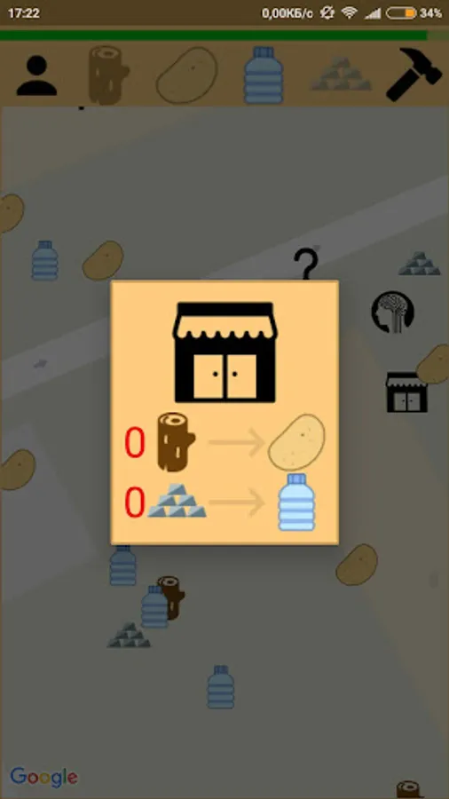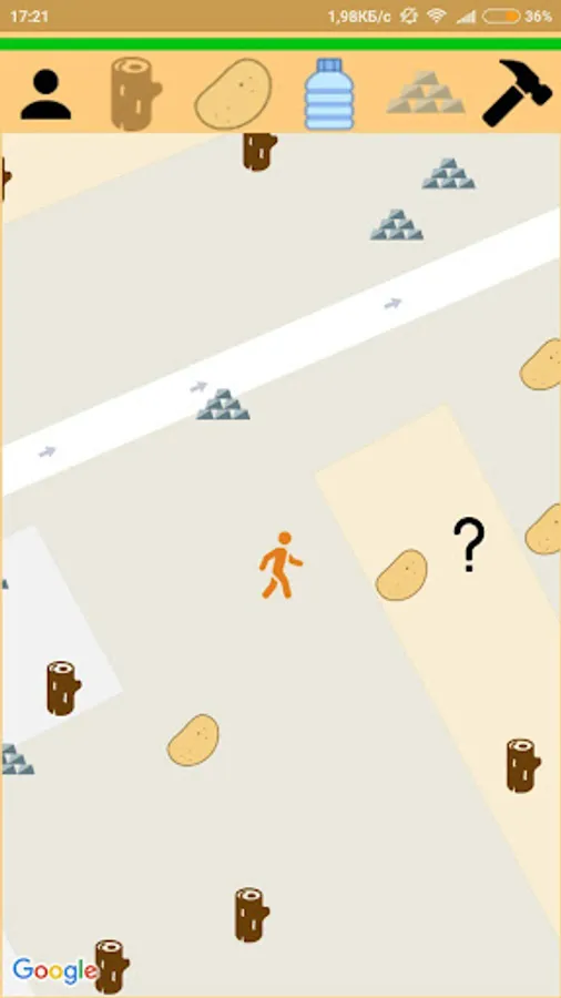 There are 4 types of resources: food, water, wood and iron. Use them to live as long as possible!