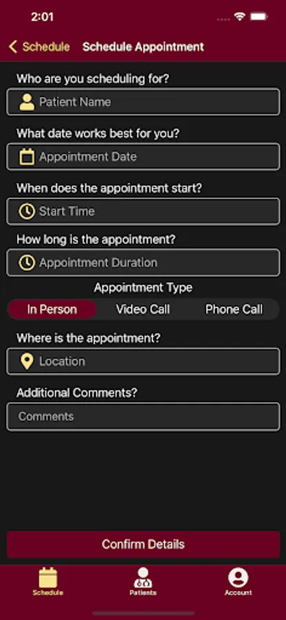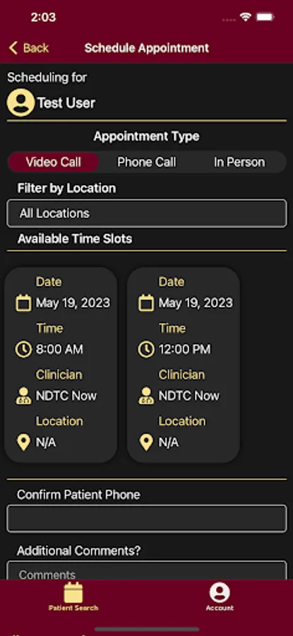 - For employees, NDTC Now shows scheduled appointment, patient details, and allows to view patient completed assessment forms