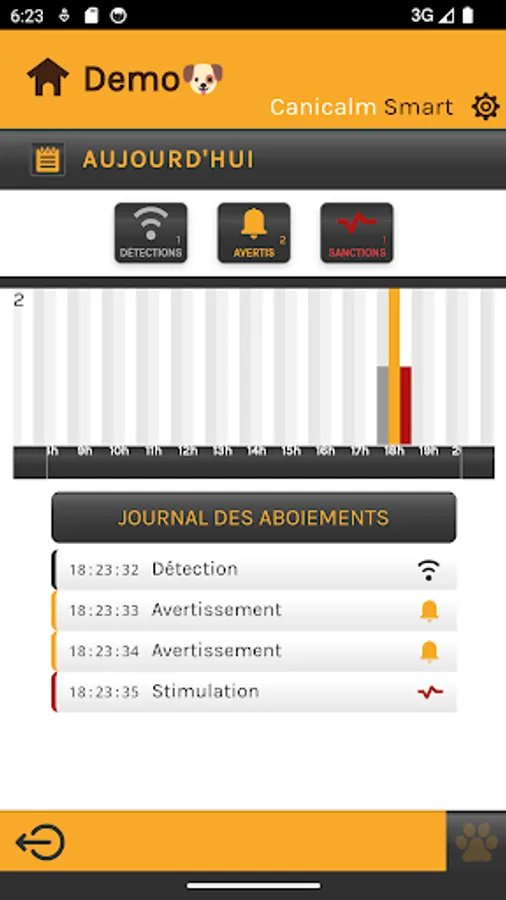 • Check statistics in the barking log when you return home. Know how many times your dog has barked, at what time and what stimulus has been triggered.