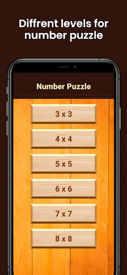 The Number Slider Puzzle app features six levels of difficulty to provide challenges to your logical thinking and mental limits. Each level offers a different grid size and number range, increasing the complexity of the puzzle.