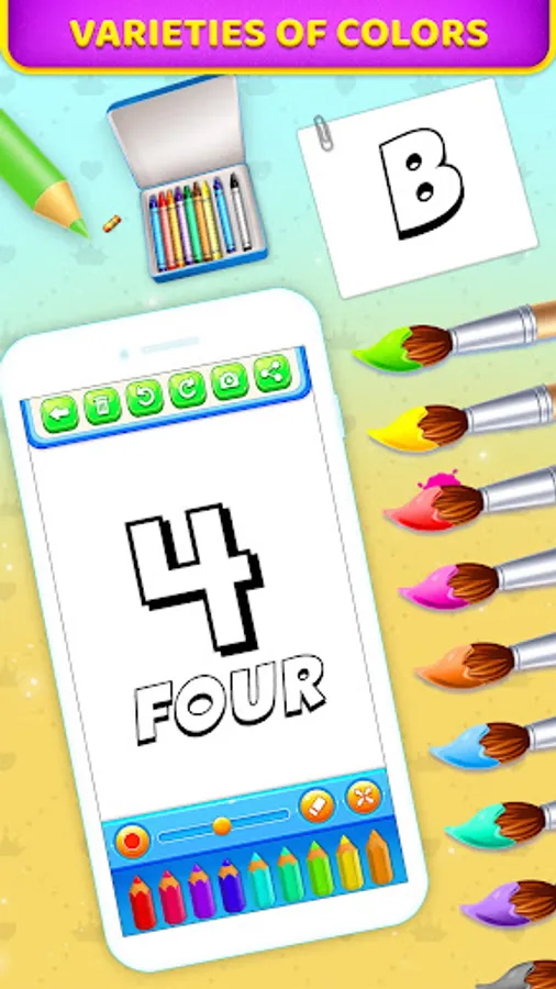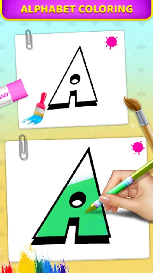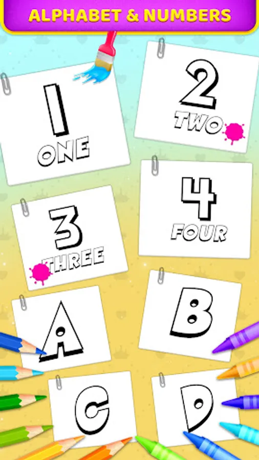 This coloring book game is designed to introduces coloring concept. This app contains many coloring images from 0 to 9 and A to Z optimized for most of android devices!