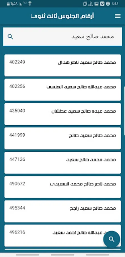 - برنامج يمكن من خلاله معرفة ارقام الجلوس والنتاائج لطلاب الثانوية العامة والأساسية فور ظهورها.