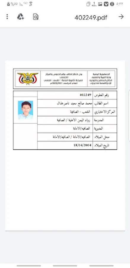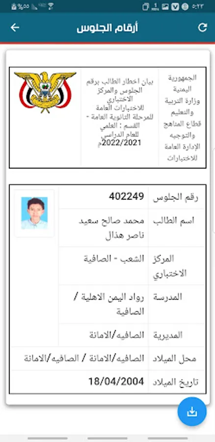 يقوم بعرض ارقام الجلوس والنتائج اليمنية