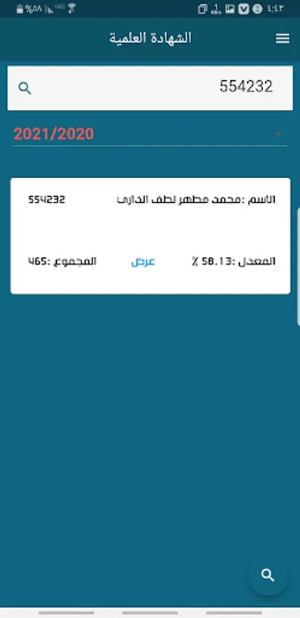 تطبيق يمكن من خلاله معرفة ارقام الجلوس والنتائج لطلاب الثانوية العامة والاساسية