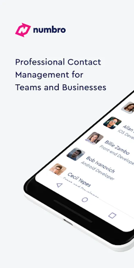 If your company already uses the Numbro cloud app for managing company contacts; all you need to do is install Numbro mobile app, and log in with your company email address.