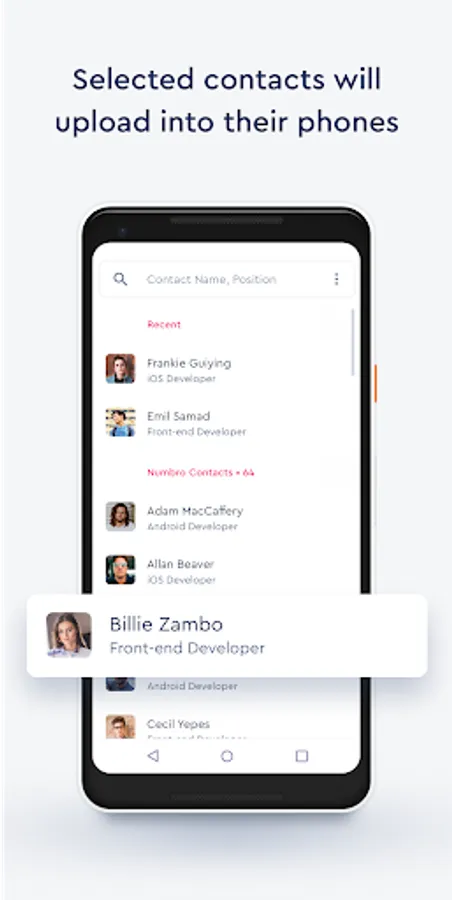 Numbro keeps your team contacts synced, both in your address book and inside the app. No more having to scramble around for someone to give you someone’s number when you need it.