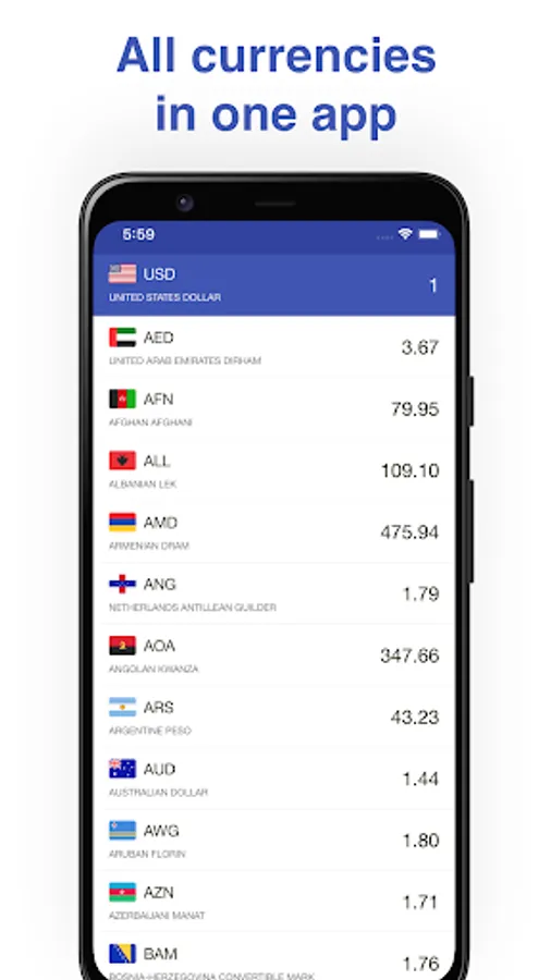 – Convert currency rate to all world currencies just in one tap