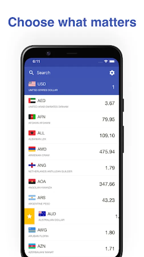 – Pin your favourite currencies to the top