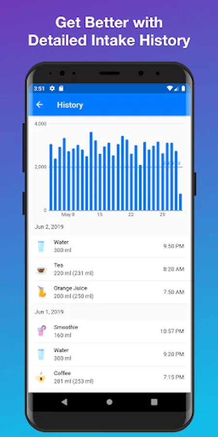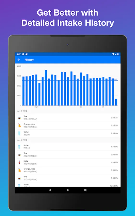 Have a perfect drink - H2O! Log your water intake to track how much water you drink every day!
