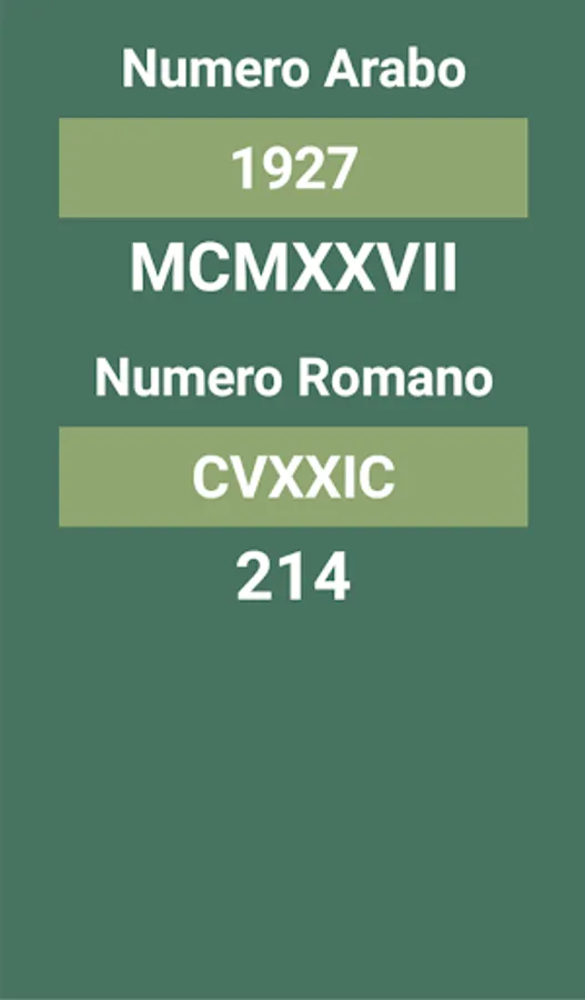 Roman numerals are sequences of symbols, each of which identifies a number. This application helps us to convert Arabic numerals to Roman numerals and vice versa in the range 1-3999. There is also the possibility to search for a number and to train with the tests, choosing between the two options (Arabic -> Roman and Roman -> Arabic) together with the range of numbers in which to generate the 15 tests.