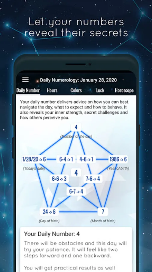 Get daily predictions and numerology charts based on your birthdate analysis and contextual elements of the day: