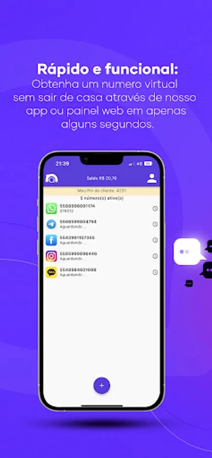 Create app accounts without worrying about your mobile number! Try our disposable virtual numbers and enjoy the convenience of generating a virtual number without leaving your home. We accept payment via PIX or PicPay to make the process even easier.