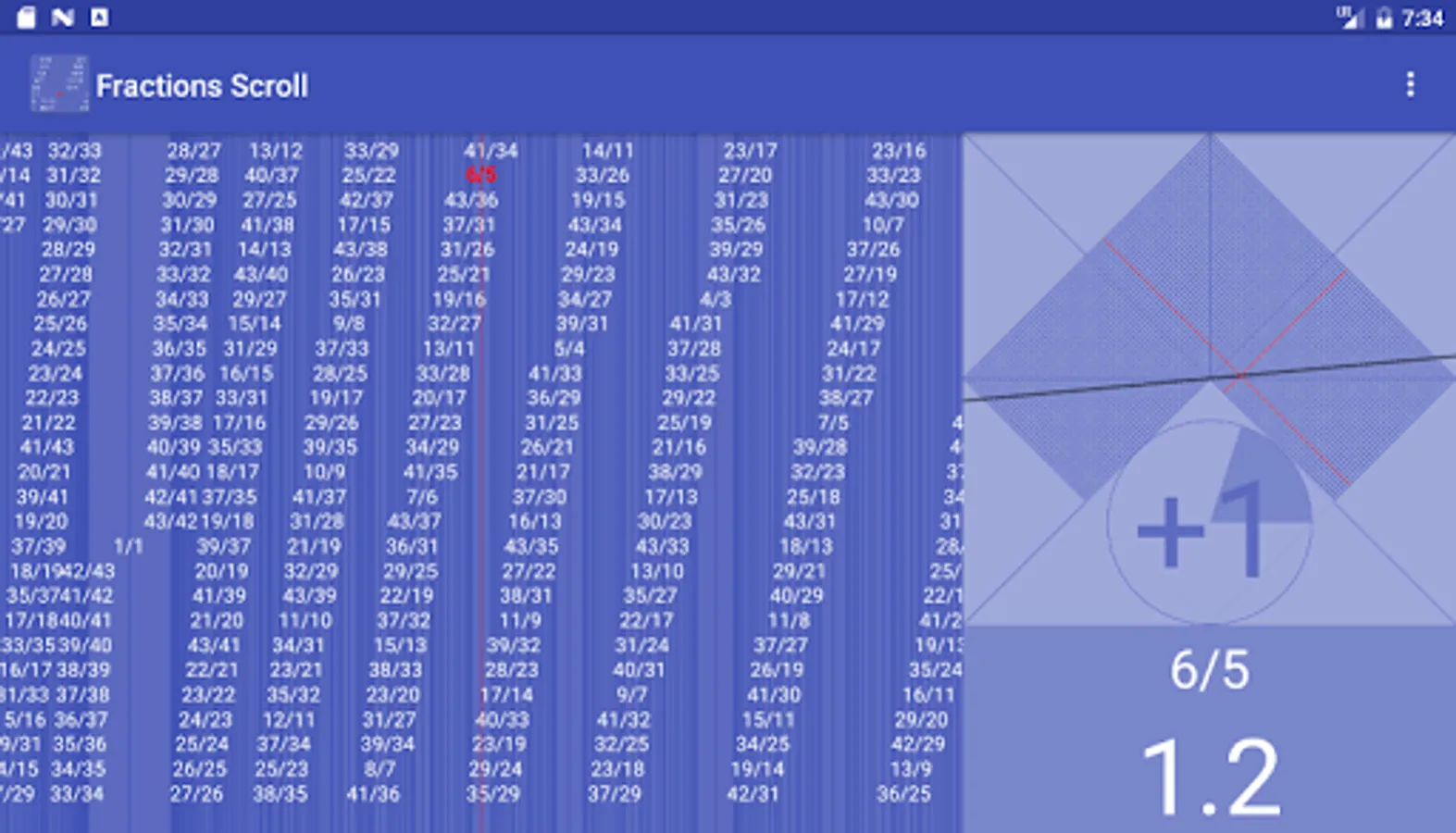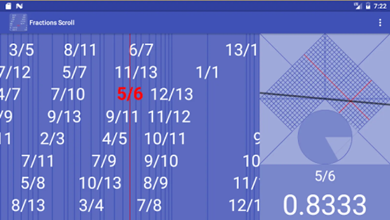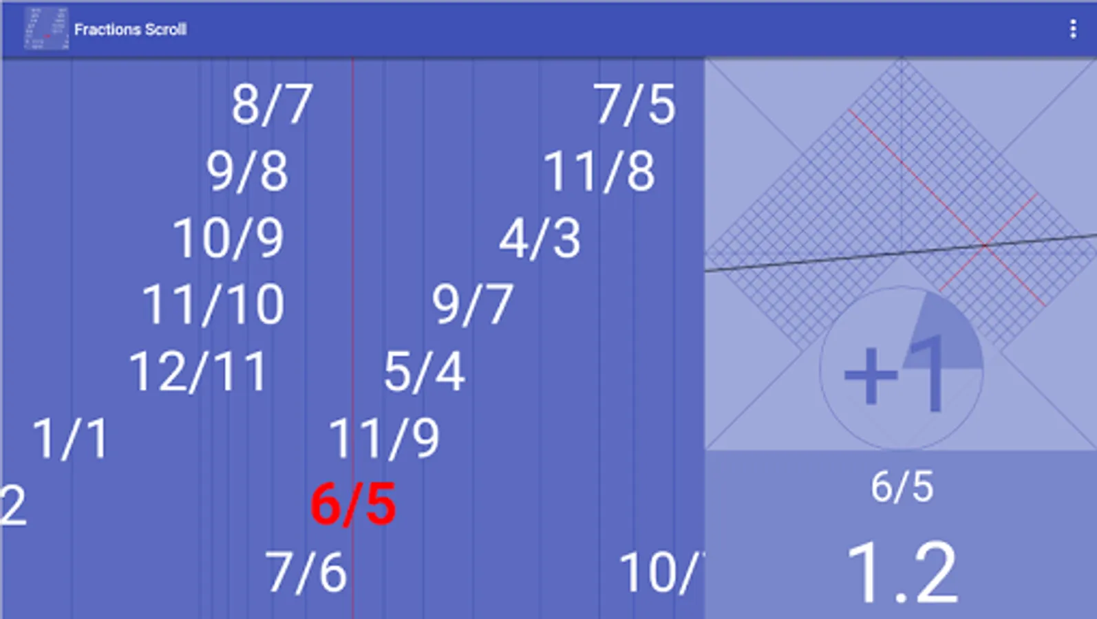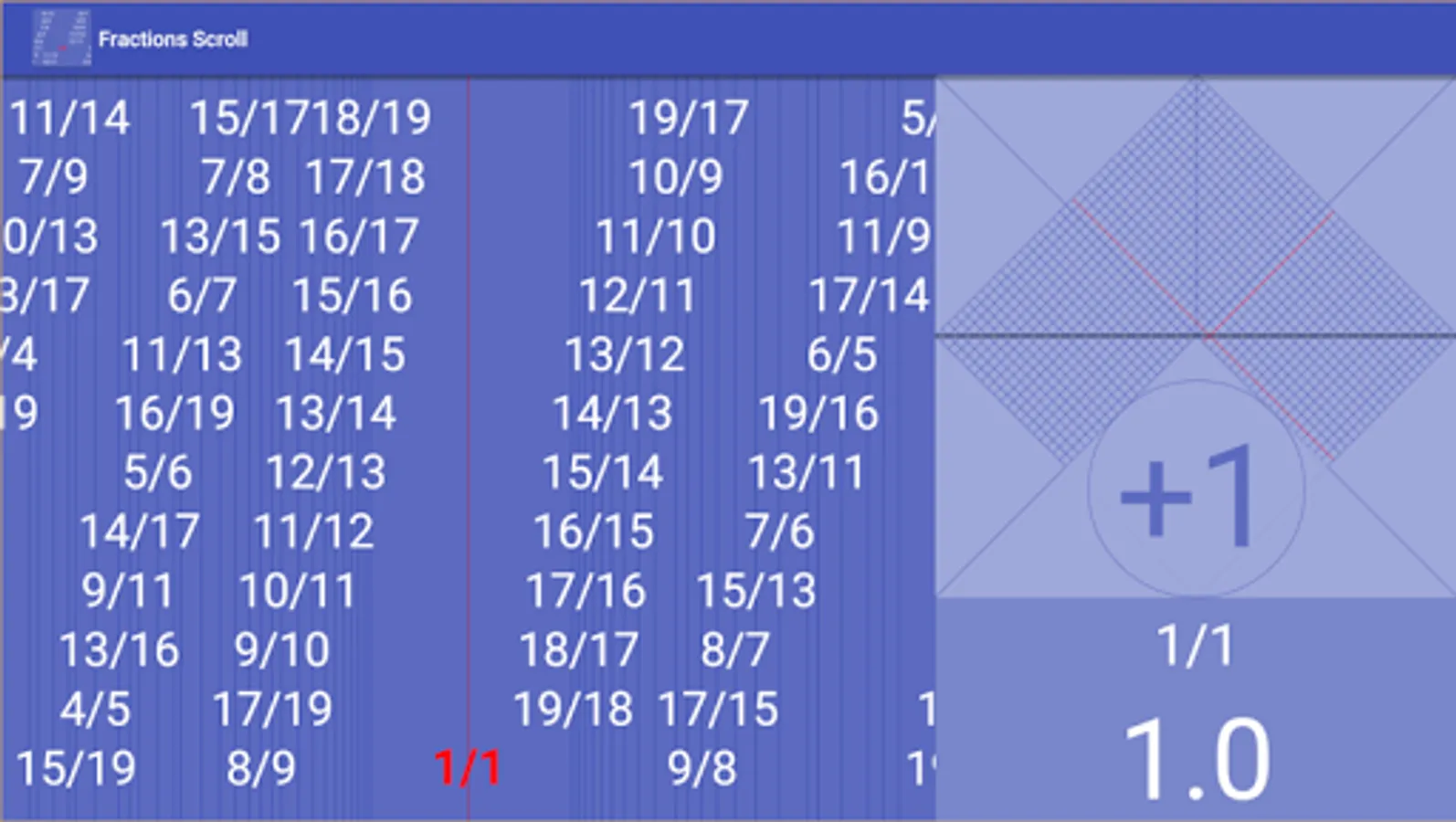 The app shows all the irreducible fractions between 1/n and n/1: The Farey Sequence.