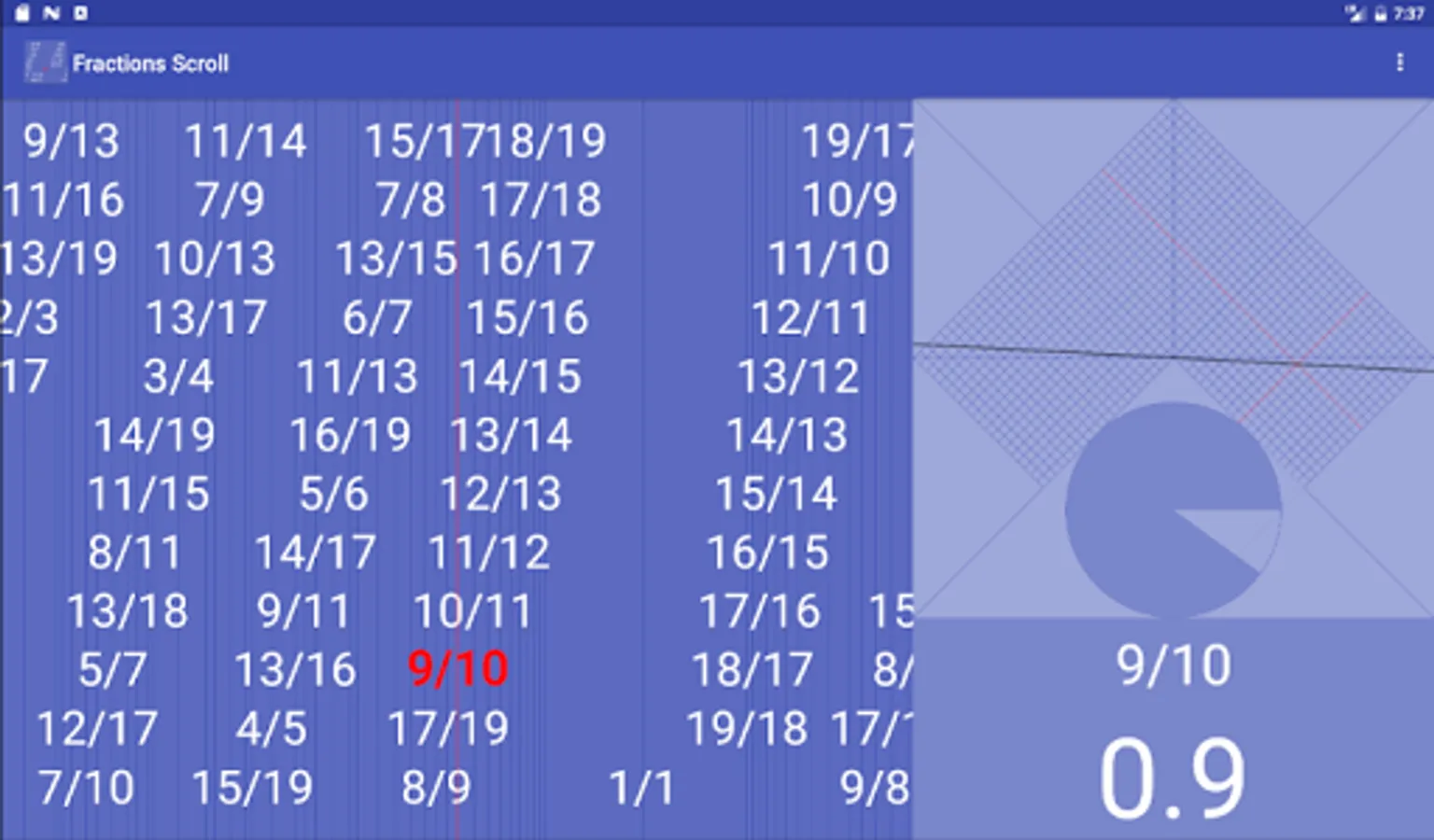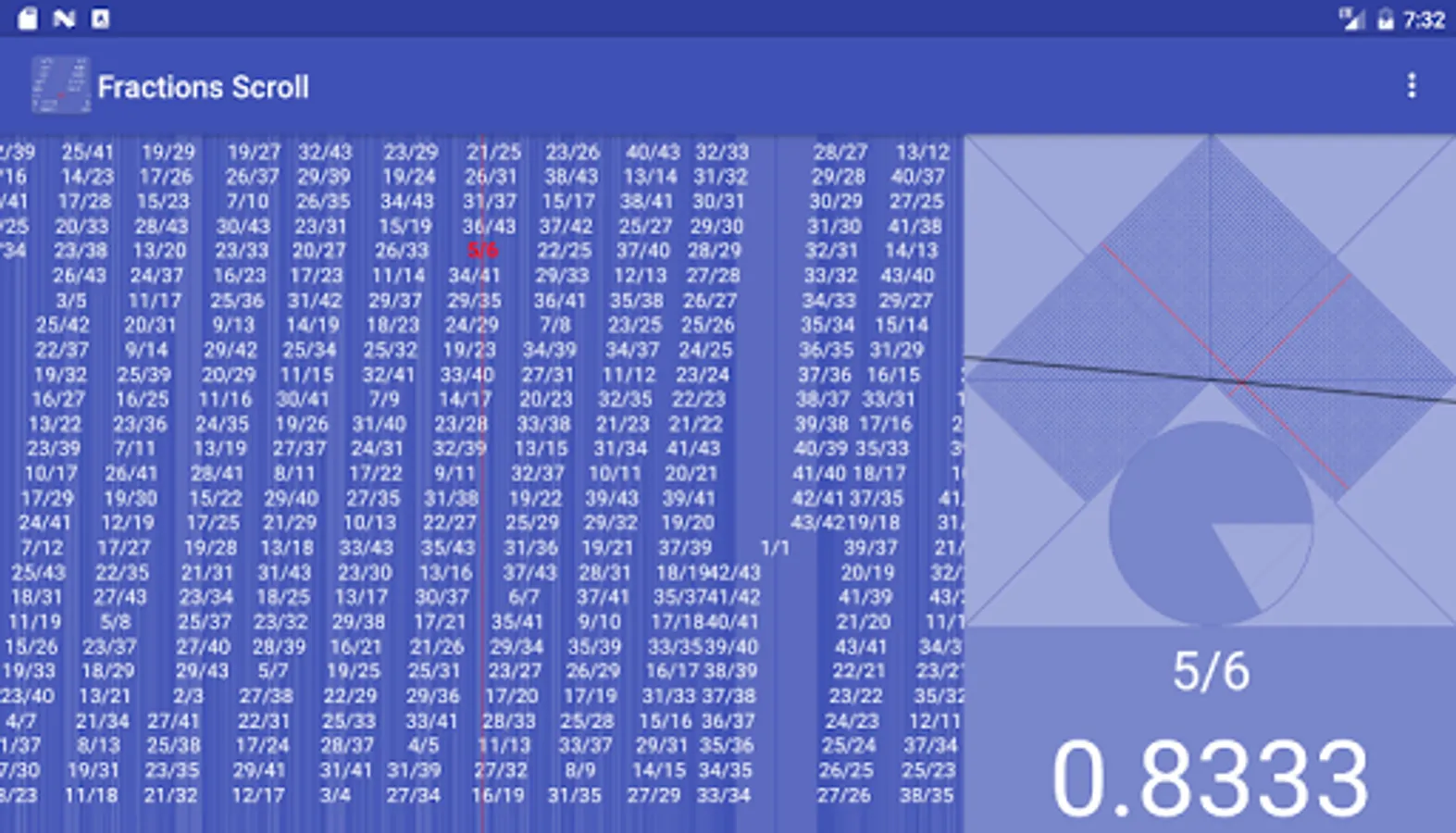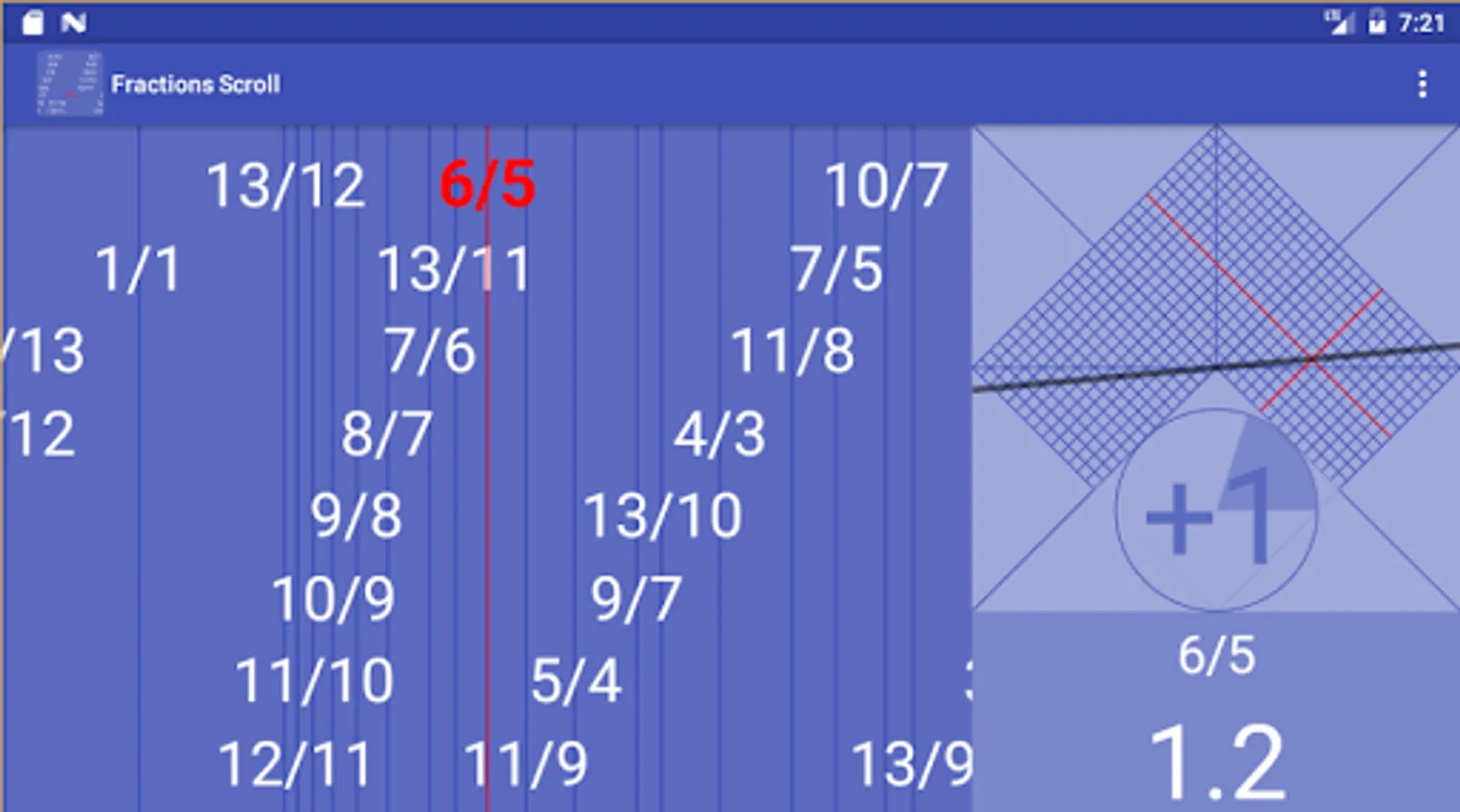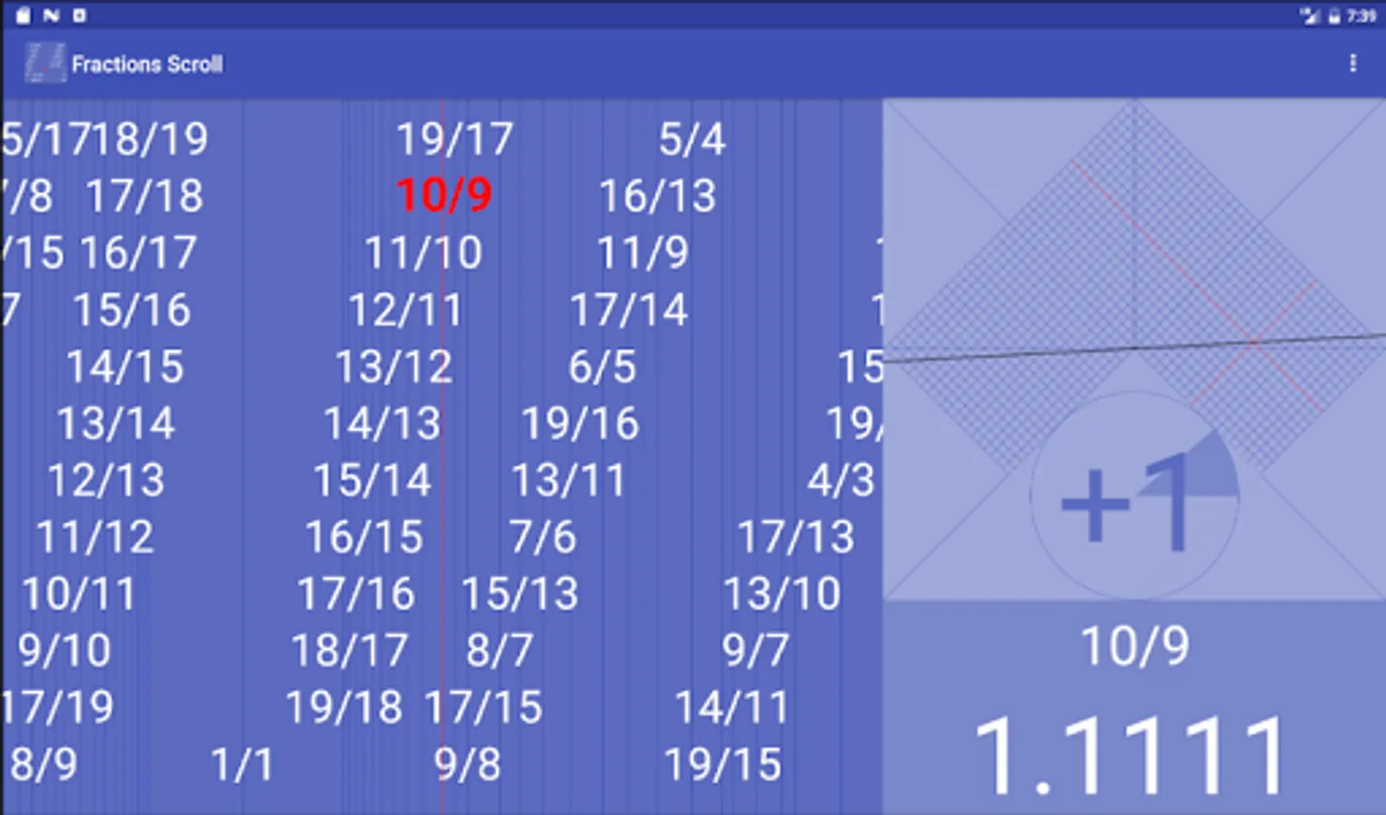 The app shows all the irreducible fractions between 1/n and n/1: The Farey Sequence.