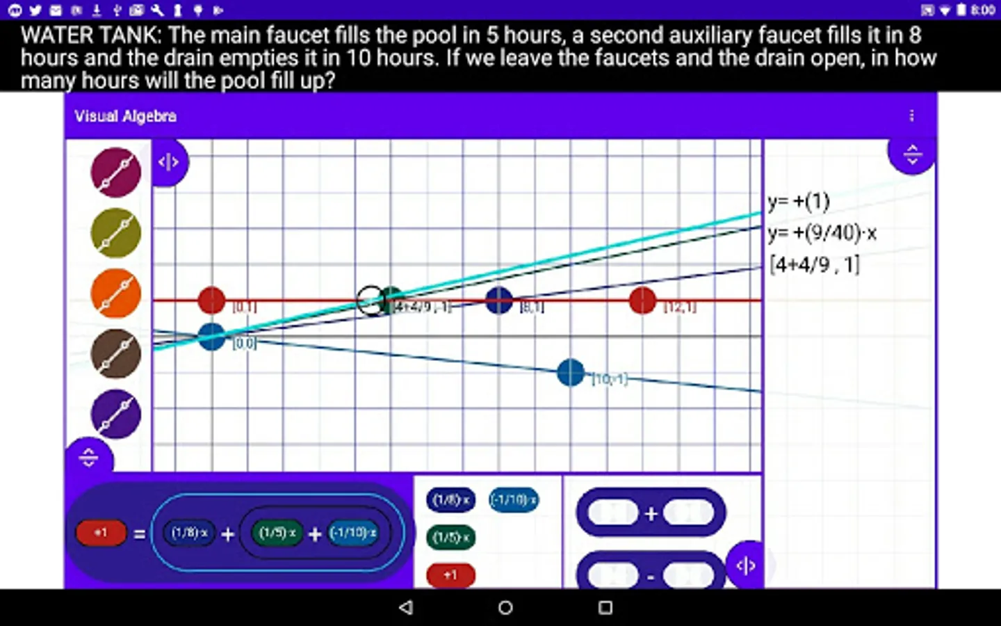 WATER TANK: The main faucet fills the pool in 5 hours, a second auxiliary faucet fills it in 8 hours and the drain empties it in 10 hours. If we leave the faucets and the drain open, in how many hours will the pool fill up?
