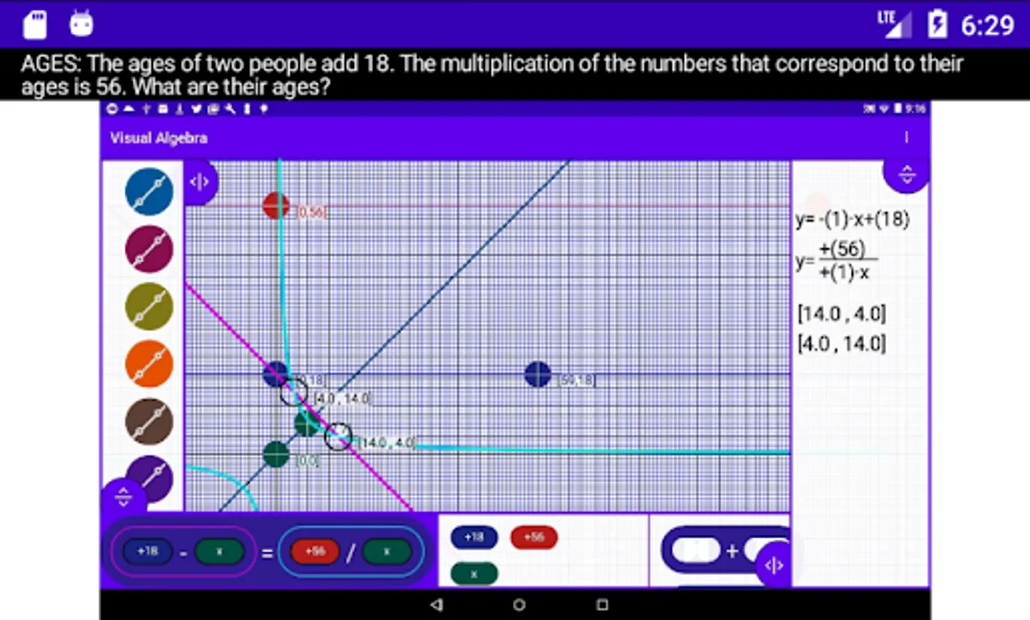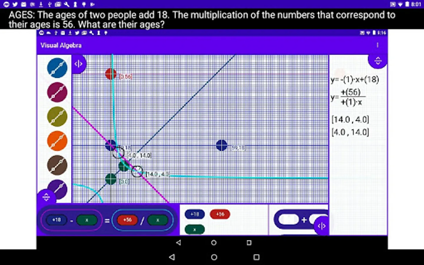AGES: The ages of two people add 18. The multiplication of the numbers that correspond to their ages is 56. What are their ages?