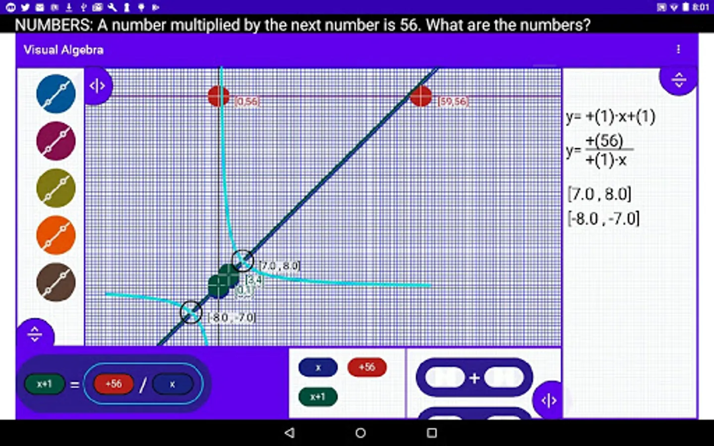 NUMBERS: A number multiplied by the next number is 56. What are the numbers?