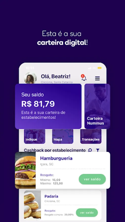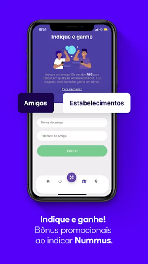 We are Nummus! A cashback app that returns part of the amount spent at establishments registered in the app.
