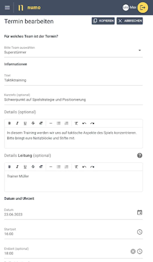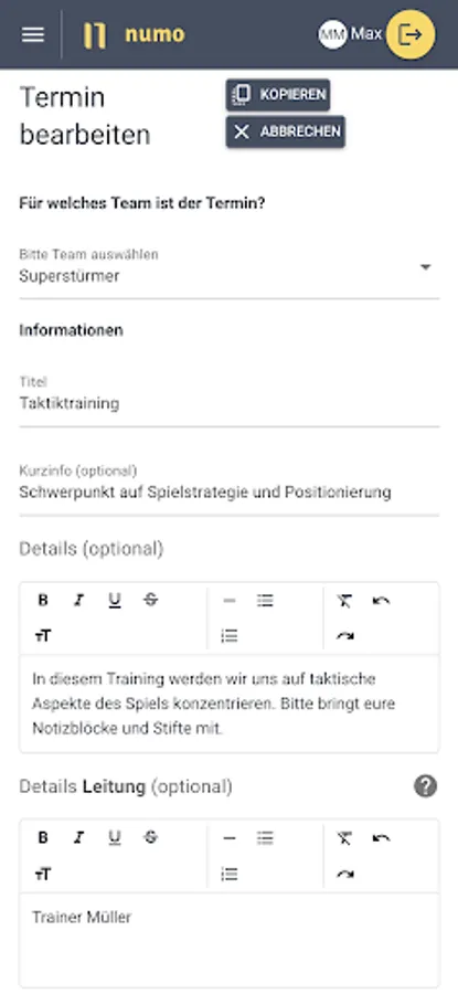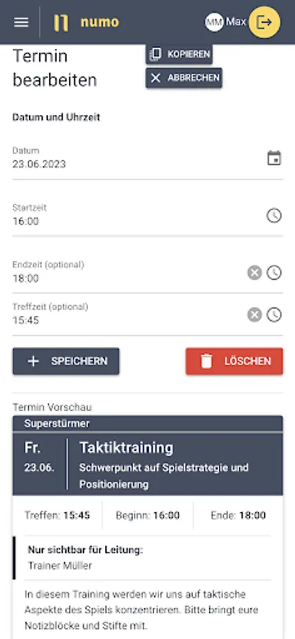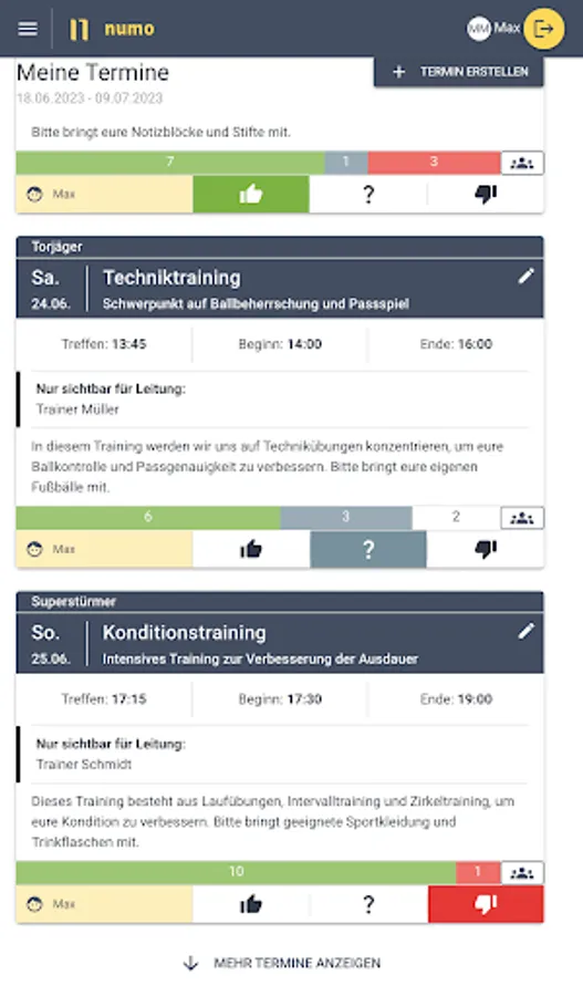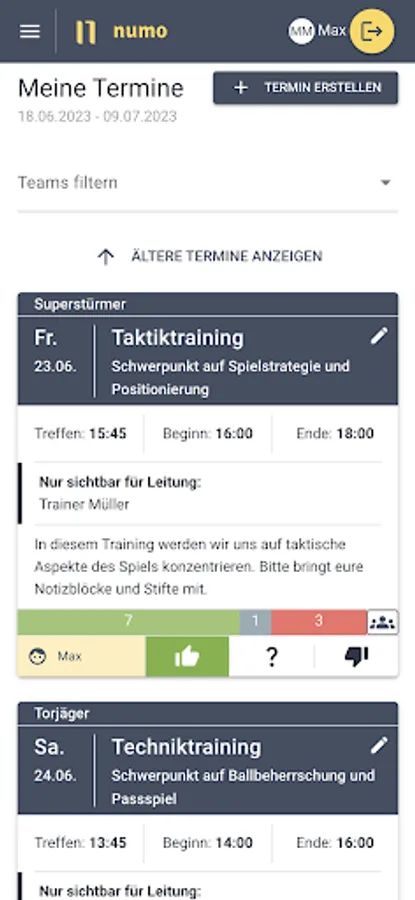 numo focuses on not only deferring work, but actually reducing it. In the first version of the app we offer extensive functions for coaches to efficiently manage their team and communicate with players and parents. Future updates will provide additional club board and volunteer functionality to further streamline club organization and management.