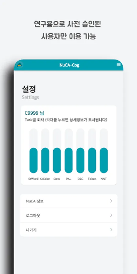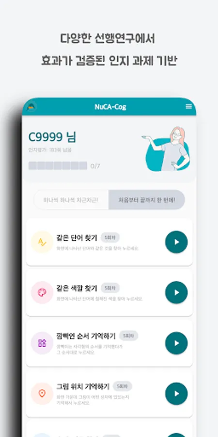 Based on the cognitive tasks verified in previous studies, we evaluate the user's cognitive function in terms of attention, language, spatiotemporal, memory, and execution from various angles.