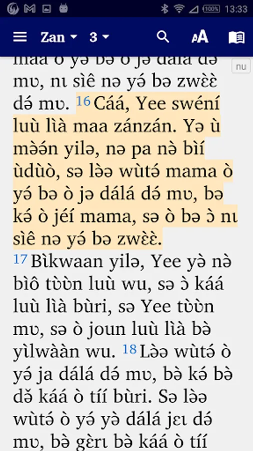 This application presents portions of the New Testament translated into the North Nuni language spoken in central Burkina Faso.