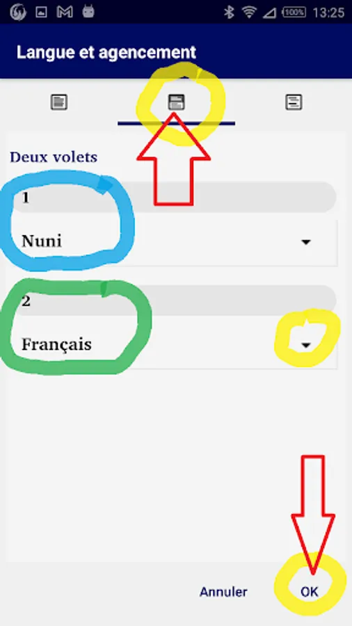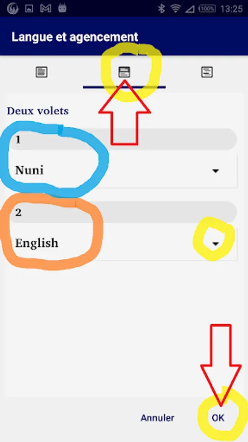 - "two panes" to display the Nuni at the top and the French or English version at the bottom