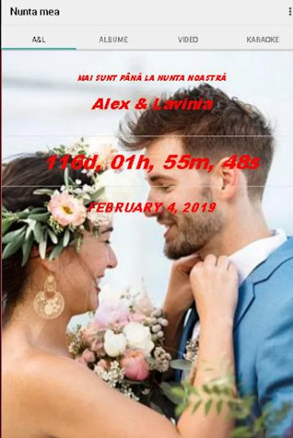 The application is designed specifically for your event. Countdown, photo album, video album and everything else you want.