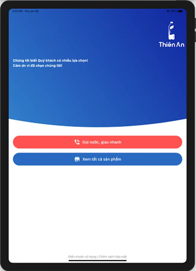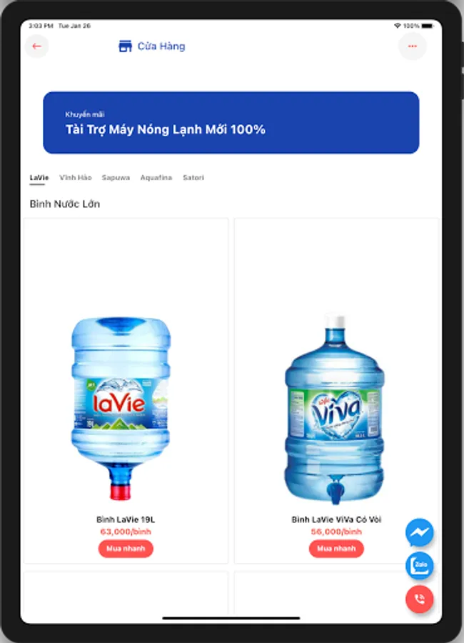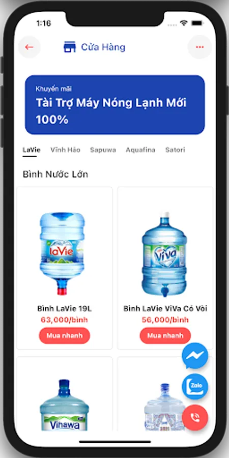 Application to call and order genuine drinks: LaVie, Vinh Hao, Aquafina. Free fast delivery, ensure on-time delivery. Export electronic invoices quickly and fully. 100% new finance and air conditioning, simple and easy debt (postpaid) contract.