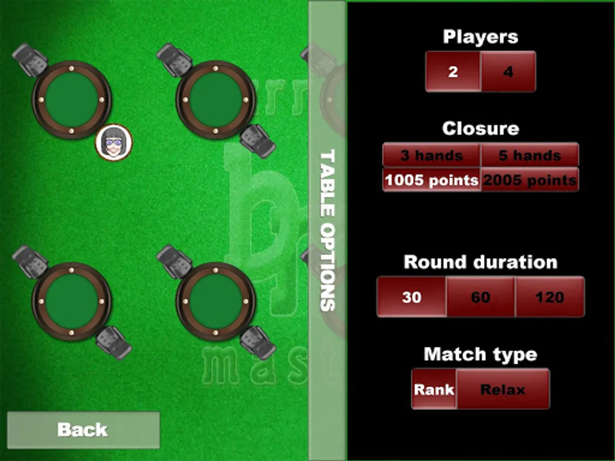 With the app Buraco Master you can play buraco online against other players, gain levels and climb the charts. In the multiplayer section you can choose between different rooms in which to play and chat with other buraco players. Customize your online profile by choosing from one of the many avatars available, or upload your own photos, forge friendships in the chat room, chatting at the tables or more privately with the private chat exclusive to your online friends. Plays at the tables with the options you prefer, you can choose from games for 2 or 4 players, rounds of 30, 60 and 120 seconds for tables relax or ranked match and games at 3 or 5 rounds or 1005 and 2005 points.