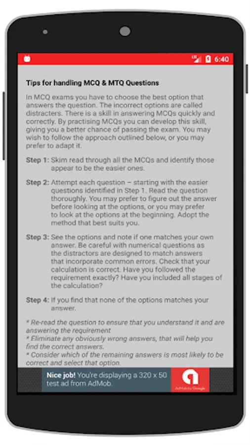 • Ability to create own quick mock by choosing the number of MCQ’s.