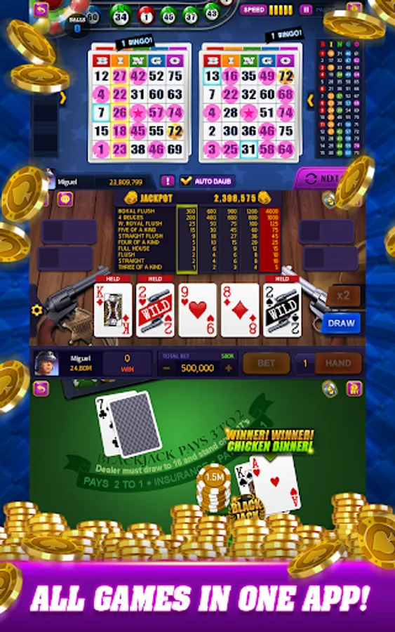 - Realistic Blackjack and Baccarat play with 6-deck cards!