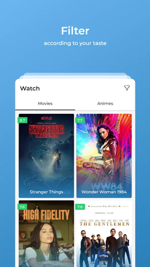 In order to make the application more informative, we use official posters and high quality images, trailers and short videos, description of content along with rating from IMDb.