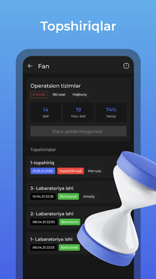 — Fanlardan qoldirilgan dars soatlari va boshqa ma'lumotlarni oson kuzatib borish mumkin.