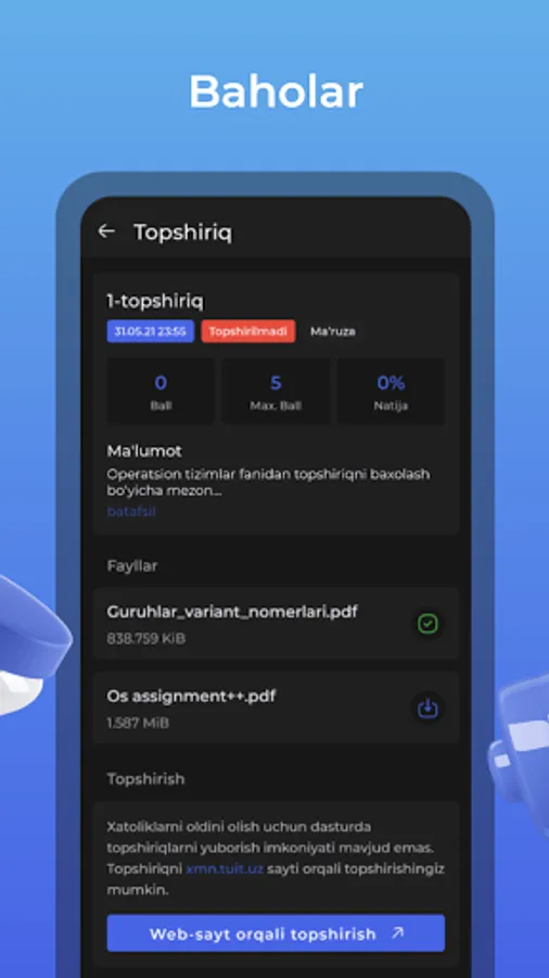 — Dars jadvalini offline rejimda ham kuzatib borish imkoniyati mavjud.