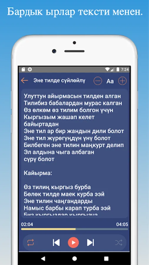 In our application you can open the lyrics of each song and listen to the song. You can also edit the font to your liking.