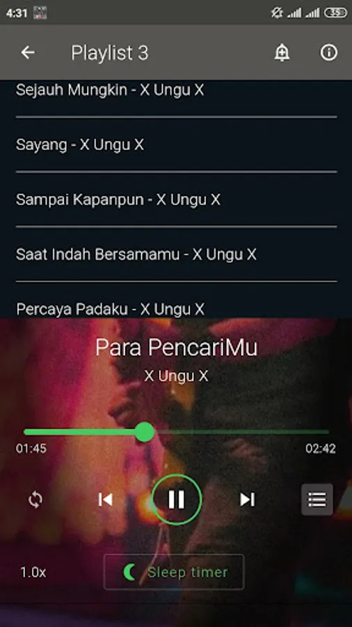 Welcome to X UNGU X OFFLINE 2023, for you fans of PURPLE songs, this application can be the right choice that you can listen to for free, because this application presents PURPLE songs, and of course you don't need to hesitate because you can play them in offline mode without buffering and you can play it anywhere at any time, of course we present it with clear audio quality to spoil the listeners of this song.