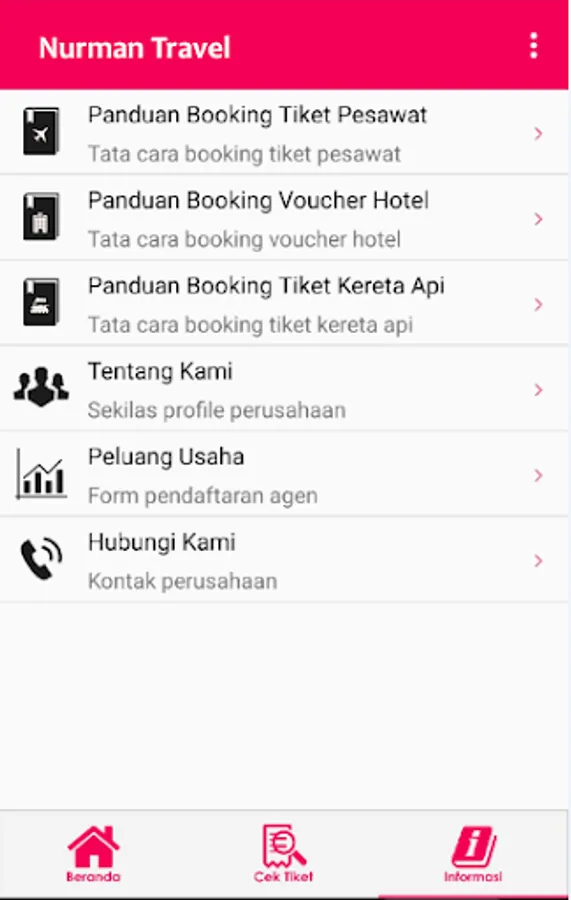 Nurman Travel in design with simple and simple display that allows users to order tickets. Until now we are still growing and trying to find the best solution for those who want to travel / travel throughout Indonesia.