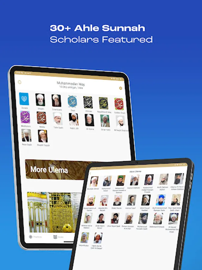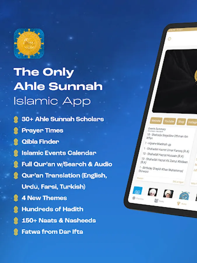 Ahle Sunnah Ulema Directory: Learn from the wisdom of esteemed Ahle Sunnah Ulema, integrated into the app. Gain access to their teaching and websites to broaden your understanding of Islam. Scholars currently included are: Pir Muhammad Saqib Bin Iqbal Shaami, Shaykh Al Habib Ali Al Jifri, Maulana Muhammed Raza Saqib Mustafai, Shaykh Taher Ul Qadri, Shaykh Ali Gomaa, Shaykh Shaykh Mohammed Aslam, Shaykh Muhammad Hassan Haseeb Ur Rehman, Shaykh Al Sayyid Habib Omar Bin Hafiz, Shaykh Hisham Kabbani, Shaykh Muhammad Imdad Hussain Pirzada, Pir Noor Ul Arfeen Siddiqui, Sheikh Abubakr Ahmad, Mufti Salman Azhari, Shaykh Sayyed Hashim Al Gaylani, Shaykh Abdullah Bin Bayyah, Shaykh Shakir Noorie, Shaykh Shaykh Muhammad Al Yaqoubi, Shaykh Hamza Yusuf, Shaykh Gibril Fouad Haddad, Mufti Muhammad Ramzan Sialvi, Pir Syed Abdul Qadir Jilani, Shaykh Mehmet Adil Ar Rabbani, Shaykh Abdal Hakim Murad, Shaykh Umar Hayat Qadri, Rizwan Hussain Al-azhari, Hafiz Athar Hussain Al Azhari, Mawlana Muhammad Hussain Qadri, Shaykh Mahmud El Efendi, Shaykh Al Sayyid Mohammad Bin Alawi Al Maliki, Shaykh Yahya Rhodus, Habib Abd Al Qadir Al Saqqaf, and more to come.