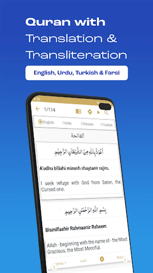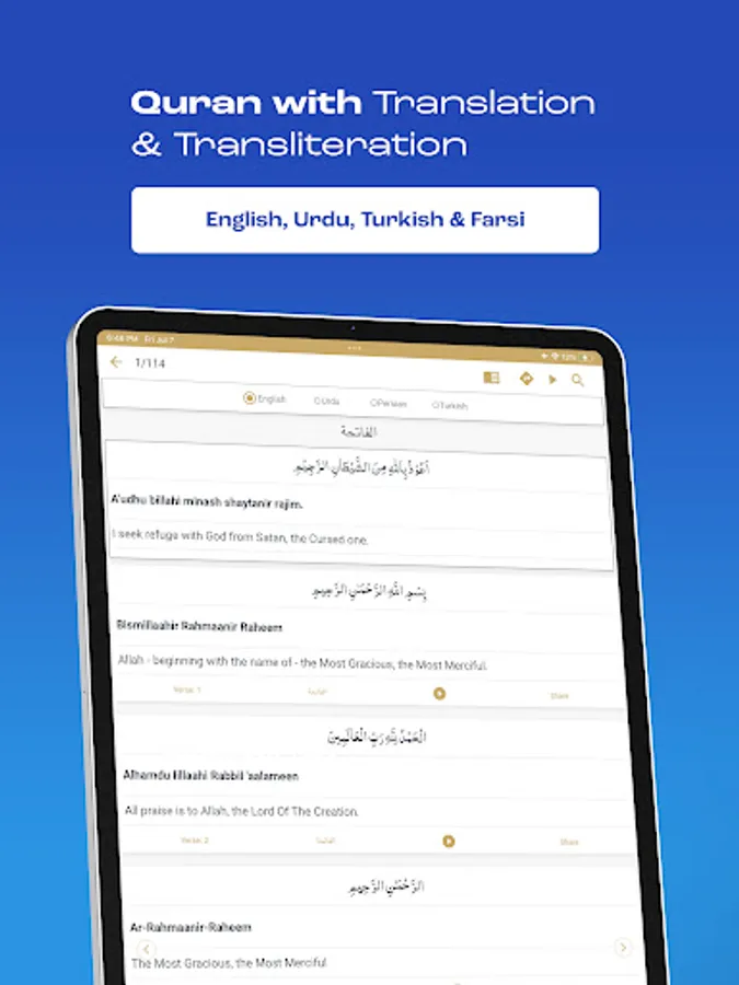 Quran: Access the complete Holy Quran with transliterations and translation in English, Urdu, Persian and Turkish, audio recitations, and state-of-the-art search functionality.