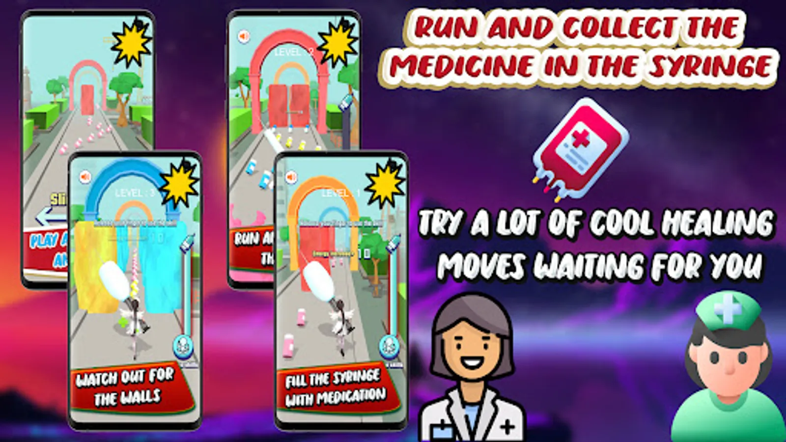 Share it with your friends now and try a game that is better than idle games and you have to be like a superheros and not just be a nurse practitioner or a nurse at home but you have to act like it was a hospital near me to run quickly and work on healing, you will feel like you are in a fast subway or in a medical center, Collect the pills that are on the way because they are more important than coins and you should know that you don't have to take the patient to house arrests because you are in a Happy Clinic and you have to be like the doctor dash towards the treatment, the stack is your job you have to do it now and collect the stack of pills