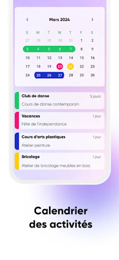 -Calendrier des activités