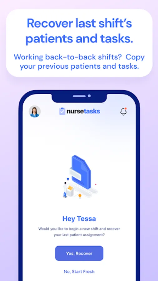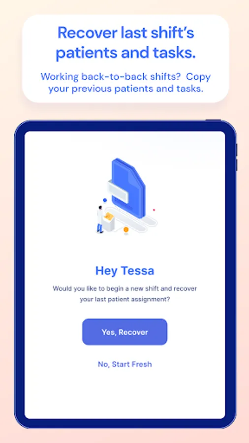- Working back-to-back shifts? Copy your last patients and tasks with our powerful recovery tool