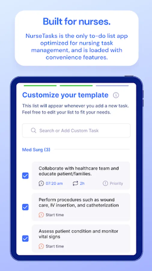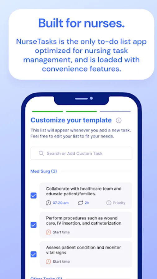 NurseTasks is the ultimate to-do list and reminder app for nurses. Unlike generic to-do list apps, NurseTasks was built for nurses, and we’ve optimized every detail specifically for nursing task management.